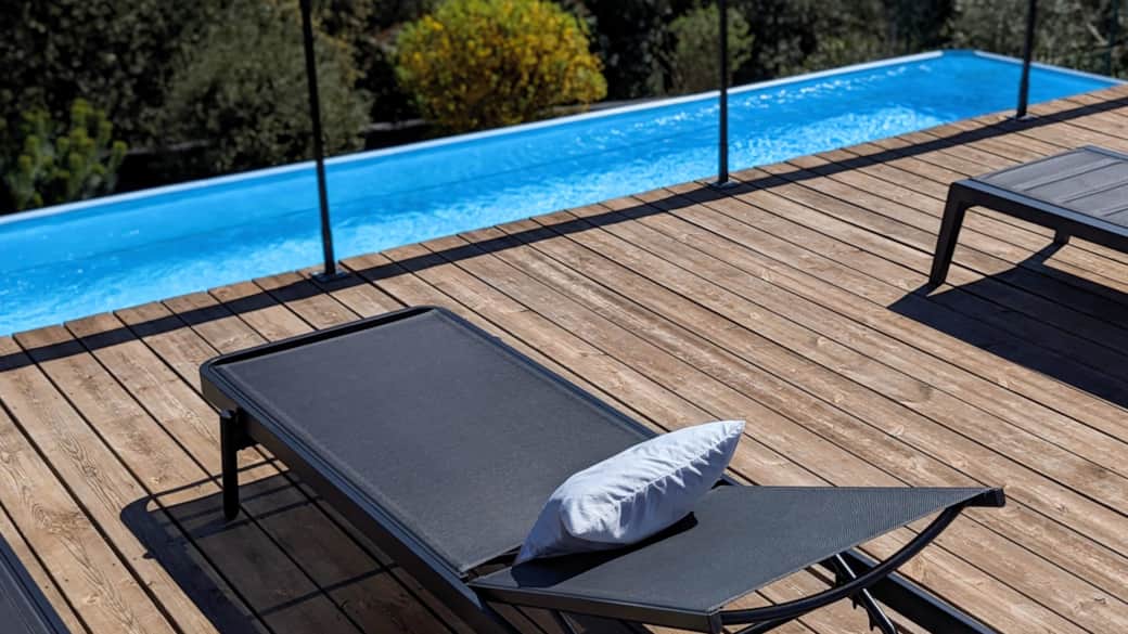 Les espaces communs vous permettent d’accéder au jardin paysager et à la piscine hors sol habillée de bois, bénéficiant d’une vue imprenable sur la garrigue.